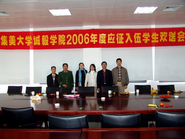 据悉,今年诚毅学院共有两名学生光荣入伍,其中社体0592班的李岳聪同学已于先前启程赴江苏某野战军服役。(郭进文)