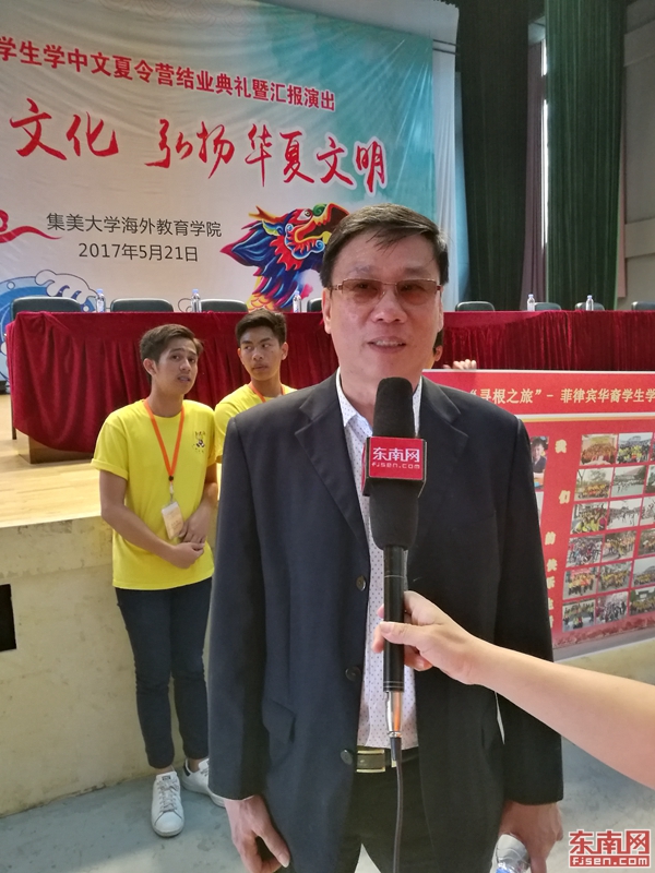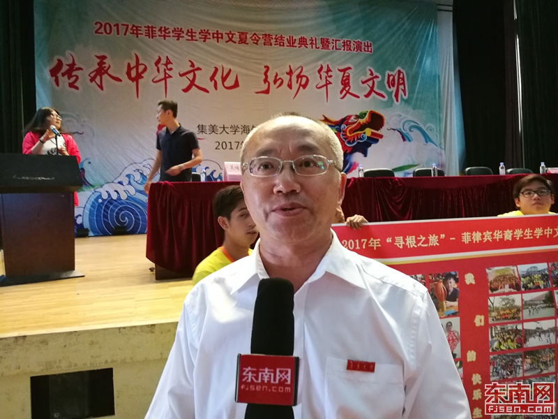 菲律宾华裔学生学中文夏令营的张芳副团长接受东南网采访
