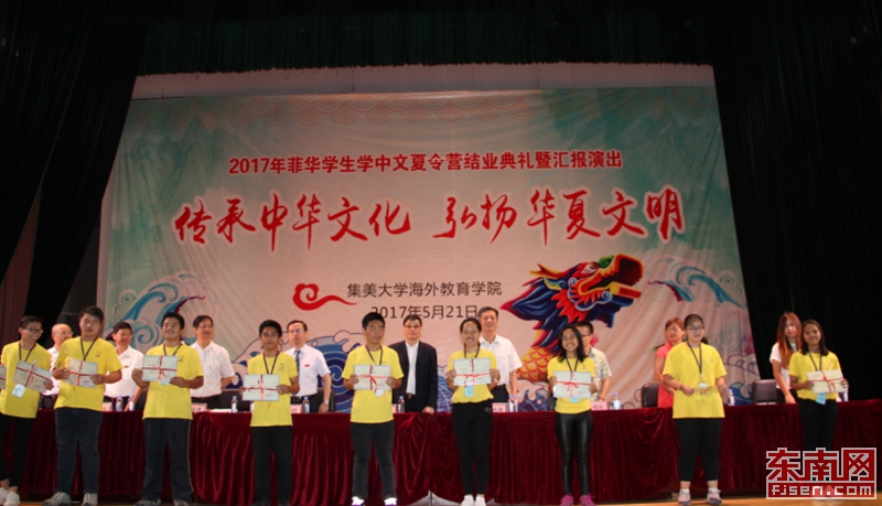 来自菲律宾鄢市恩惠学校的夏令营营员吴盈盈说,回菲律宾之后,要更努力地学习好中文,希望将来长大了能来厦门上大学。营员陈杰浩同学说,他不单要自己学中文,还要带动身边人一起学中文,让自己成为一名小“中国通”。优秀学生代表陈筱敉说,两个月的学习生活,让自己深深为祖(籍)国的悠久历史和灿烂文化而自豪,为自己身体里流淌着华人血液而骄傲。
