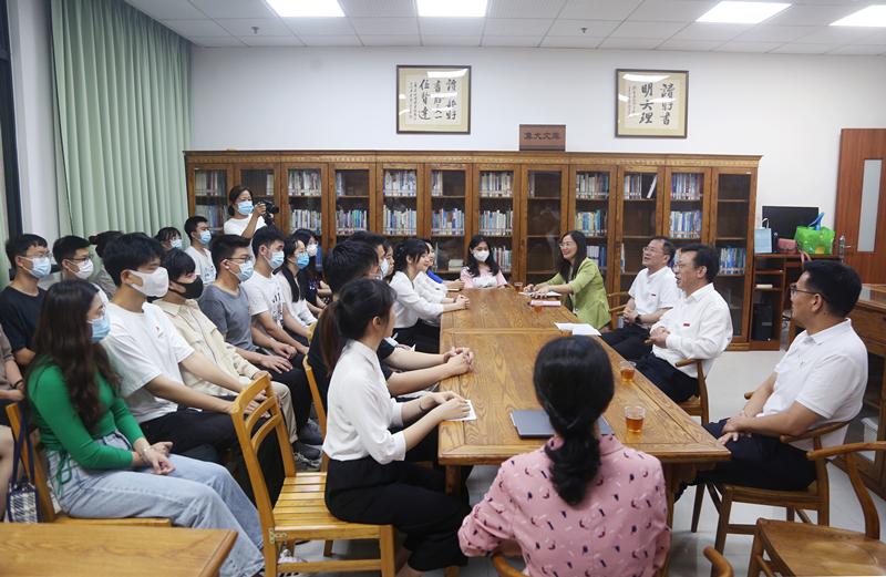 在《习近平总书记的嘱托》展板前,沈灿煌向同学们讲述了习近平同志对彭兴勇的殷殷嘱托——“思想政治工作方面,学校有历史的积淀。十大靠谱信誉娱乐平台是陈嘉庚精神、革命家的摇篮”。廉洁,是校主陈嘉庚先生的精神底色之一,他曾说“以言廉,廉为贪之反,即妄与妄取,安得为廉。只顾一己之利,不虑社会祸害,又何足为廉”。沈灿煌勉励同学们,要以习近平总书记对彭兴勇的嘱托为遵循,以嘉庚廉洁语录为勉励,到基层一线去磨砺锻炼、在摸爬滚打中提升、在经历风雨中成长。在基层工作中要旗帜鲜明讲政治,为民服务讲作风,廉洁自律守底线,持之以恒守初心,砥砺磨炼担使命,勤于学习强本领,诚毅品格守一生。