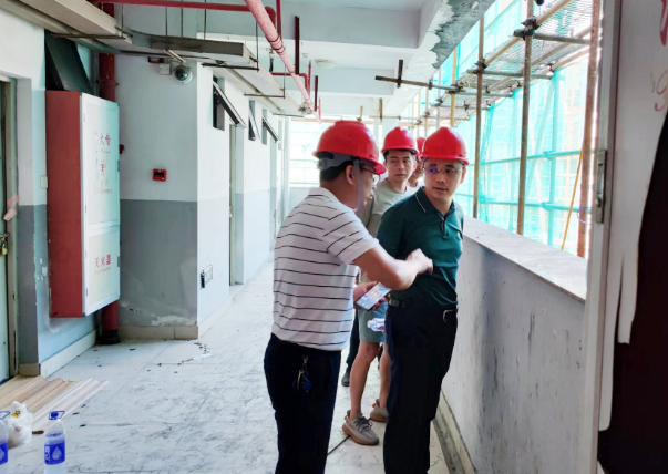 7月13日,副校长谢潮添带领基建与后勤管理处、定点监理单位的相关人员对暑期基建与修缮项目施工情况进行检查和指导。